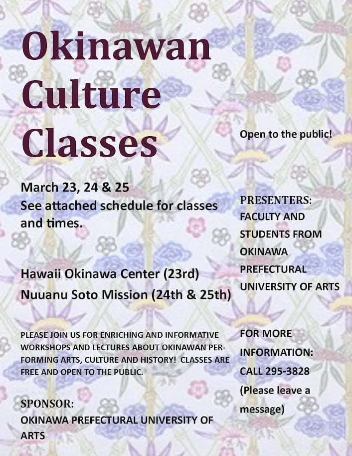 PLEASE JOIN US FOR ENRICHING AND INFORMATIVE WORKSHOPS AND LECTURES ABOUT OKINAWAN