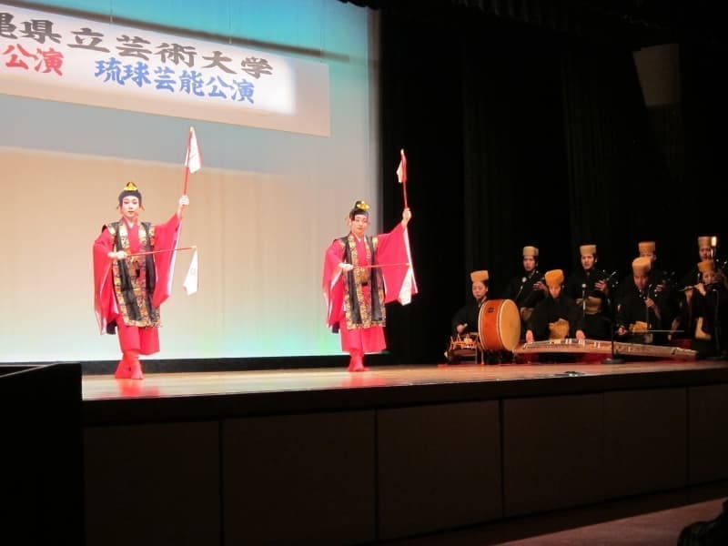 ・見るのも踊るのも初めてでしたが、優しく教えて下さって楽しかったです。先生や助手の先生の美しいうごきにみとれました。(琉球舞踊)