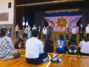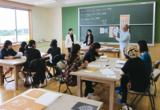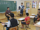 ▲芸大講師・学生は泊港を出港し、粟国港へ。民宿で荷物を預け、粟国村立幼小中学校へ。各教室の準備をし開講式を行いました。(画像:粟国村立幼小中学校)