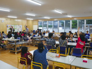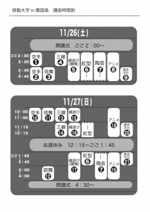 「移動大学in粟国島」は、粟国村立幼小中学校を会場として、8つの教室(のべ21講座)が実施された。