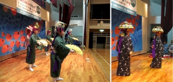 あいにくの雨模様にも関わらず多良間村伝統芸能・琉球芸能公演には211名の方々が足を運んで下さいました。多良間村のみなさんによる伝統芸能は色鮮やかな装飾がとてもきれいで、特徴的な動きもあり、本学学生も舞台の脇から食い入るように見ていました。