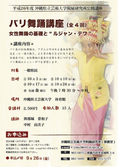 『バリ舞踊講座(女性舞踊の基礎と“ルジャン・デワ”)』