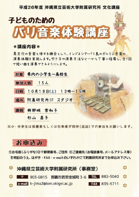 お問合せ:沖縄県立芸術大学附属研究所 事務室