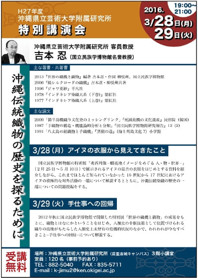 【講 師】吉本忍 沖縄県立芸術大学附属研究所 客員教授