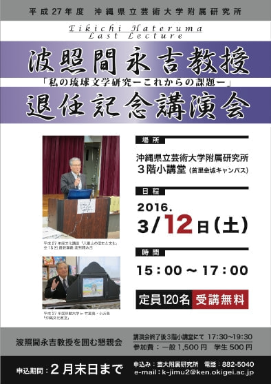 【講 師】久万田晋所長(挨拶)、波照間永吉教授、柳悦州教授