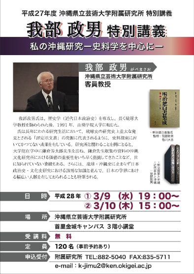 【講 師】我部政男 沖縄県立芸術大学附属研究所 客員教授