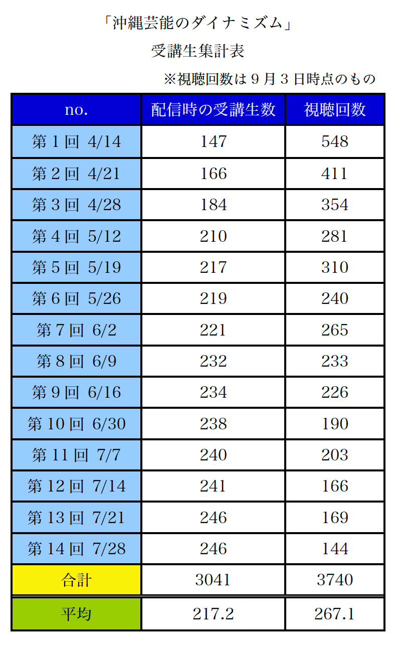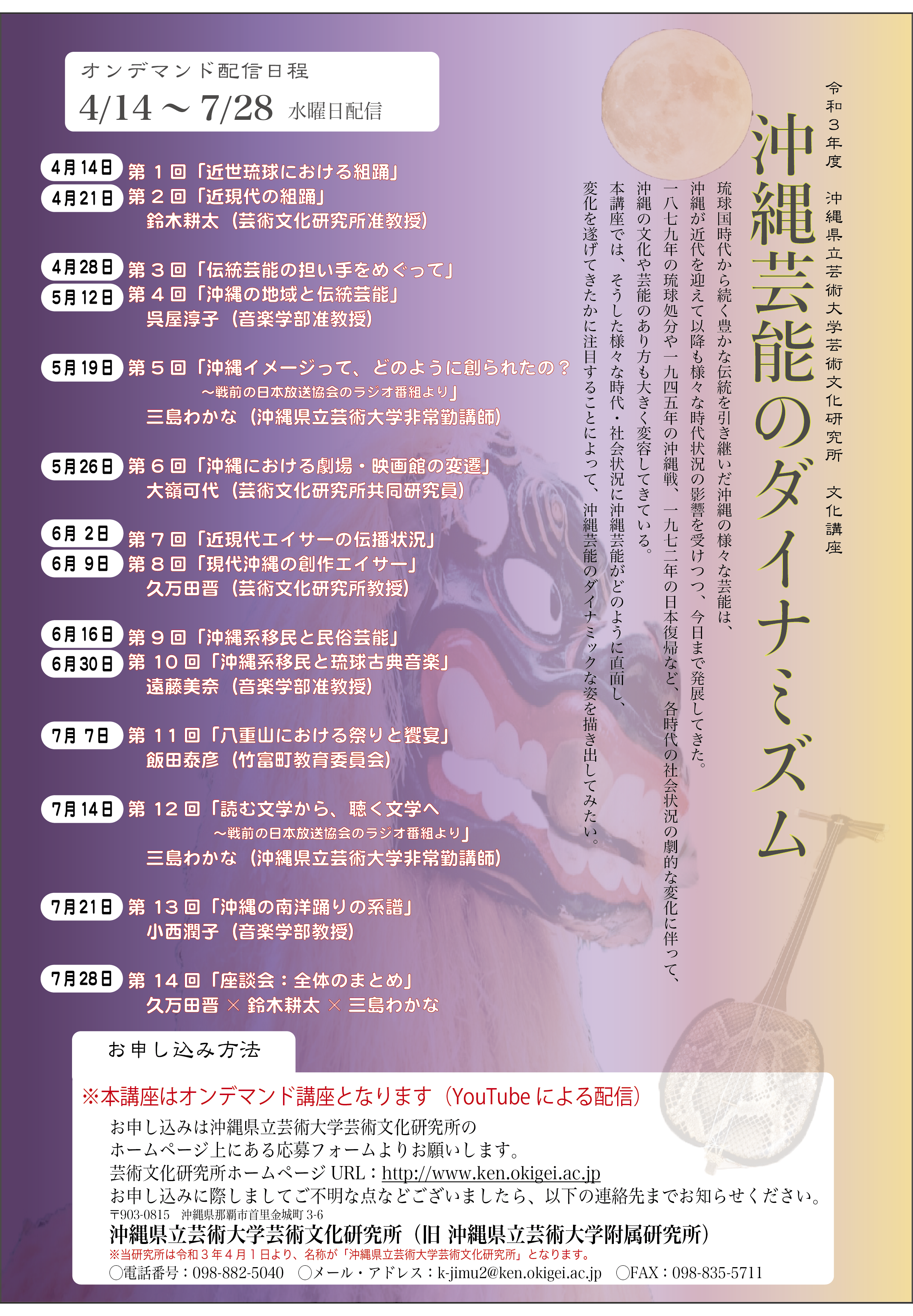 この度、令和3年4月14日より令和3年7月28日の期間でオンデマンドにて開催しました文化講座「沖縄芸能のダイナミズム」が終了しました。